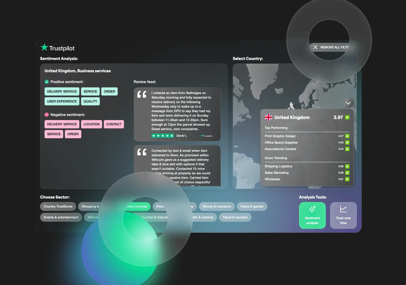 TrustLens, TrustSignals, and TrustSource turn millions of verified consumer reviews into actionable intelligence. Use TrustLens for instant, interactive insights on sentiment trends and brand performance; TrustSignals to embed ratings and sentiment scores directly into products to build customer confidence; and TrustSource to access raw review data for deep analysis, market research, and competitive benchmarking at unmatched scale.